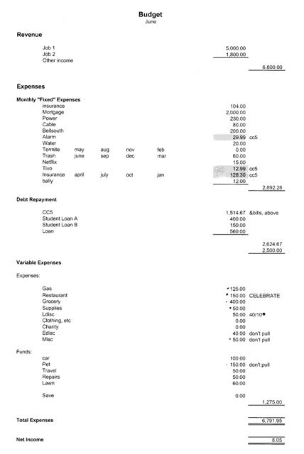 Expenses: Termite due this month. We've had some unpredictably high power bills, so I am just keeping the budget for that at 300. I figure it will all even out, as I seem incapable of telling which months will be high and which low. I guess next year I will have this year's bills to refer back to.
